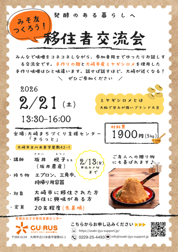 味噌づくりを通して、大崎の暮らしや人の魅力に触れてみませんか?