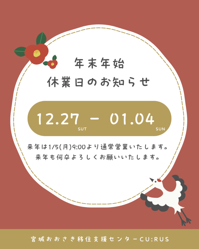 年内中の移住相談や空き家相談などございましたら、営業期間内にご相談ください。